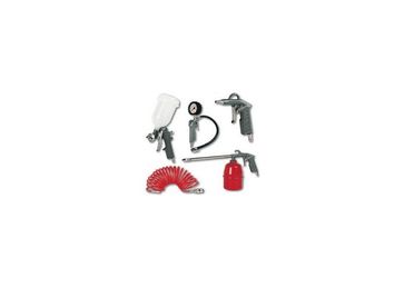 внабор входит: моющий пистолет 61 В пистолет для подкачки шин 60 D краскораспылитель 162 А с верхним бачком продувочный пистолет 60 А шланг спиральный SRB или SRU 5 метров None
