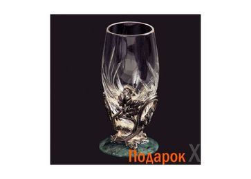 Стопки "Лоза" с изящным подиумом из посеребренной бронзы и зеленого натурального мрамора подходят к сервировке стола как стопки для водки (для крепких алкогольных напитков).