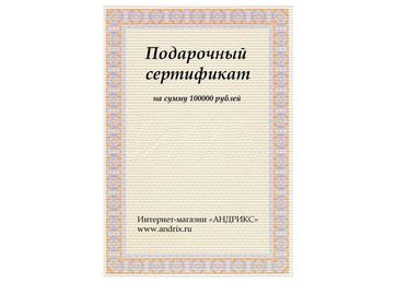 Подарочный сертификат 100000 рублей