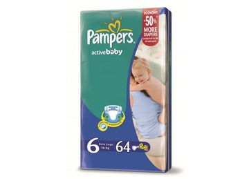 - Детские подгузники Pampers Active Baby Extra Large №6 16+ кг 64 шт. в упаковке по выгодной цене 1 165 р. руб.;