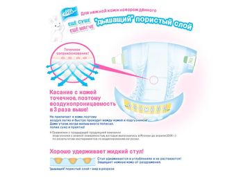 Японские подгузники Merries производятся из материалов, прошедших строгий и тщательный контроль качества. Мягкий хлопчатый материал, из которого изготовлен подгузник предохранит Вашего малыша от появления опрелостей.