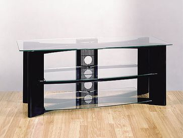 ТВ тумба под аппаратуру, телевизор: плазма, LCD, до 52"" max 113 кг металл: цвет черный лак, стекло прозрачное, размер ШхВхГ 1321х546х559 мм, средняя 940х425 мм h-197 мм, нижняя полка 940х425 мм (max 22.7 кг) h-203 мм" None