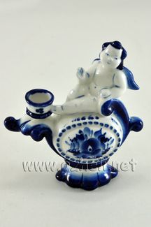 Закажите Подсвечник "Амурчик". Гжельский фарфор. арт. 2663 у компании Гжель, гжельский фарфор, интернет – магазин подарков и сувениров. в Москве на портале Alloy: