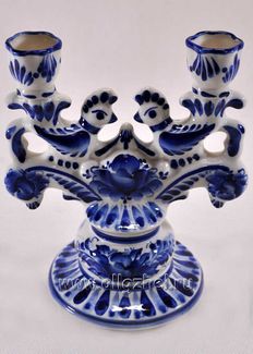 - Подсвечник "Дуэт" двухрожковый. Гжельский фарфор. арт. 3419 по выгодной цене 880 р. руб.;