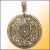 На подвеске изображена розетка из криновидного орнамента - символ изобилия и процветания, означающего благопожелание “Дом - полная чаша”. В центре круги с точками - символ засеянной пашни. Словами это можно выразить так: "Да будет всюду жизнь!".