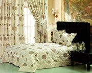Богатая, фактурная ткань, сочетающая благородный глянец молочного фона и матовость изящных завитков, в контрасте со стилизованными цветами, украсит буквально любую спальню, внеся в неё атмосферу уюта и комфорта. Шторы того же дизайна станут прекрасным украшением и защитой от солнца.