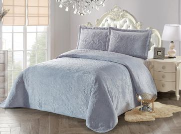 Красивые и практичные покрывала из велюровой ткани с термостежкой классическим узором станут прекрасным украшением любой спальни. Покрывало не электризуется, плотное и прочное, обладает антивандальными свойствами, подкладка сделана из мягкой однотонной хлопковой ткани. Велюровый ворс очень мягкий и приятный на ощупь, придает покрывалу прекрасный внешний вид, дарит нежные тактильные ощущения и дарит теплоту и уют домашнему интерьеру. Классический рисунок термостежкой очень универсален, покрывало также можно использовать как вдоль, так и поперек, например в качестве накидки для дивана. Кроме того, такой набор велюрового покрывала с наволочками станет по-настоящему хорошим и полезным подарком любой женщине.Размер: двуспальный (евро) 230Х250 см +2 наволочки 50х70 см Цвет: серый, стальнойПроизводство: КитайУпаковка: сумочка None