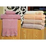 Размеры и комплектация: Полотенца 30*50 см - 4 шт Состав: 100% хлопок, махра, отделка кружево Плотность: 480 гр/м2 Упаковка: подарочная коробка. None