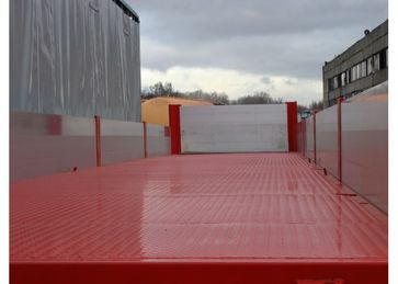 3 х 9000 кг и пневмоподвеска BPW, усиленное исполнение для тяжелых дорожных условий с возможностью подъема и опускания платформы. Средняя ось оснащена датчиками EBS (ABS).