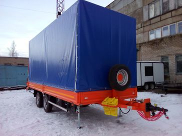 Прицеп цельносварная металлическая рама, выполнен в виде платформы, оборудованной тягово-сцепным устройством, откидными трапами (аппарелями) с возможностью регулировки по ширине, для уменьшения угла въезда грузовая платформа выполнена с задним скосом. Подвеска прицепа оборудуется двумя осями и системой рессорной параболической подвески. Тормозная система пневматическая с АБС.Оси GRANNING Ирландия.