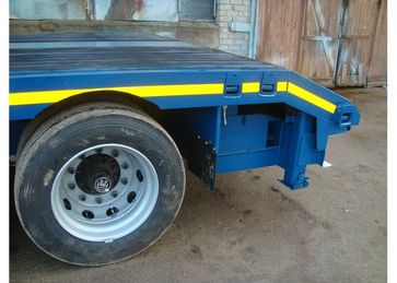 ШАССИ: Сварная конструкция из продольных и поперечных балок, изготовленных из стали, опорная плита с соединительными 2 и 3,5 дюймовыми шкворнями JOST, 2 х 12 тонн переднее опорное устройство с односторонним управлением справа JOST, 2 противооткатных упора с держателям, держатель для крепления запасных колес, бортовая площадка на гуське.Угол скосов на гуське и на платформе 15 градусов, возможно изготовление без скосов. ОСЕВОЙ АГРЕГАТ: Оси 5х12000 кг, пневмоподвеска, BPW, SAF или GIGANT усиленное исполнение для тяжелых дорожных условий, оснащение датчиками ABS, 1-я, 2-я и 3-я оси стационарные, 4-я и 5-я оси подруливающие с краном фиксации при движении задним ходом, оси также блокируются при включении передачи заднего хода. 1-я и 2-я оси подъемные с одним краном управления. КОЛЕСА И ШИНЫ: 22 колес (включая 2 запасных), диск 17,5 х 6,5, шины 235