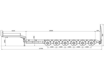 Низкорамный полуприцеп-тяжеловоз (трал) 6-ти осный,предназначен для перевозки строительной и дорожной техники и других негабаритных и тяжеловесных грузов общим весом не более 73000 кг.