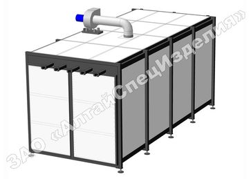 ЗАО «АлтайСпецИзделия» осуществляет изготовление камер для полимерной (порошковой) окраски. По требованию заказчика покрасочные камеры могут быть изготовлены различной комплектации и габаритов.