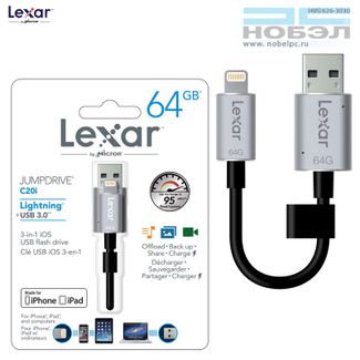 - Флешка Lexar 64GB JumpDrive C20i Lightning to USB 3.0 Флешка-кабель LJDC20I-64GBBNL в каталоге Портативные носители информации USB Flash в Москве;
