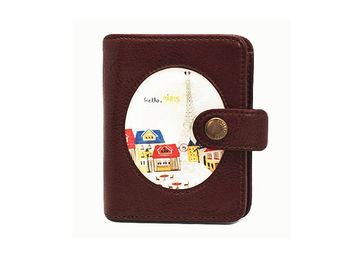 Кошелек и держатель для карточек с застежкой-кнопкой в ретро-стиле цвета щвейцарского шоколада с изображением Эйфелевой башни. Внутри держатель на 14 карточек из ПВХ. Карман для мелочи и фото. Кошелек в подарочной упаковке. None