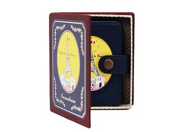 Кошелек и держатель для карточек с застежкой-кнопкой в ретро-стиле цвета синих чернил с изображением Эйфелевой башни. Внутри держатель на 14 карточек из ПВХ. Карман для мелочи и фото. Кошелек в подарочной упаковке. При покупке Елки елочные игрушки в подарок