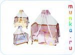 100%хлопок.Оригинальный дизайн, нежные расцветки в пастельных тонах. В комплекте используется 5 видов тканей-компаньонов. В комплекте: борт (360 см, синтепон) с вышивкой, балдахин (450 см, вуаль), наволочка (40x60 см),пододеяльник с вышивкой(110x140 см),простыня на резинке,подушка (40x60 см),синтетический антиаллергенный наполнитель), одеяло (110x140 см, шерсть или синтетический антиаллергенный наполнитель) голубой, розовый None