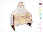 Полный комплект постельного белья из сатина, коллекция Полянка. Бортик (раздельный на 4 стороны со съёмными чехлами, высота 50см, синтепон, 120х60см) Балдахин (сетка, сатин, 180х500см) Наволочка 40х60см Пододеяльник 110х140см Простыня 140х100см Одеяло (110х140см, шерсть 80%, ПЭ 20%) Подушка (40х60см, шерсть 80%, ПЭ 20%) Ткань: сатин 100 % хлопок None