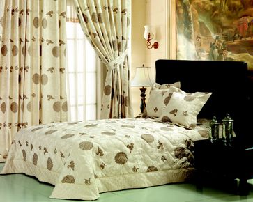 Богатая, фактурная ткань штор, сочетающая благородный глянец молочного фона и матовость изящных завитков, в контрасте со стилизованными цветами, украсит буквально любую спальню, внеся в неё атмосферу уюта и комфорта. Ткань средней плотности станет прекрасным защитником от солнца и освежит вашу комнату. Для завершения образа предлагается покрывало, выполненное в том же дизайне.