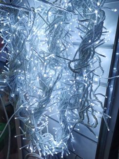 Гирлянда занавес светодиодный (или дождь) уличный 3 х 3 м., 1100 ламп LED, белый провод, свет свечения Белый, с возможностью соединения. Контроллер 4 режима None