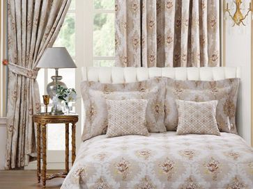 Жаккардовые шторы выполнены из 100% полиэстера. Классический итальянский рисунок привнесет роскошь в Ваш интерьер! Покрывало того же дизайна дополнит образ комнаты.