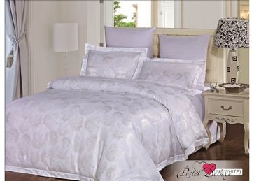 Постельное белье сделано из жаккарда - ткани фактурного плетения, в которой нити очень плотно переплетены и образуют узорчатый релье. При таком плетении достигается очень высокая плотность нитей на единицу площади, поэтому всякий жаккард заведомо долговечнее любого другого материала, полученного одним из простых способов плетения. Петли перекручены, при растяжке не распускаются. Благодаря этому ткань жесткая, прочная, но не тяжелая, менее подвержена истиранию. Жаккард очень практичный материал, неприхотливый в уходе.