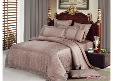 Постельное белье сделано из жаккарда - ткани фактурного плетения, в которой нити очень плотно переплетены и образуют узорчатый релье. При таком плетении достигается очень высокая плотность нитей на единицу площади, поэтому всякий жаккард заведомо долговечнее любого другого материала, полученного одним из простых способов плетения. Петли перекручены, при растяжке не распускаются. Благодаря этому ткань жесткая, прочная, но не тяжелая, менее подвержена истиранию. Жаккард очень практичный материал, неприхотливый в уходе.