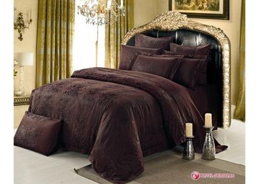 Постельное белье сделано из жаккарда - ткани фактурного плетения, в которой нити очень плотно переплетены и образуют узорчатый релье. При таком плетении достигается очень высокая плотность нитей на единицу площади, поэтому всякий жаккард заведомо долговечнее любого другого материала, полученного одним из простых способов плетения. Петли перекручены, при растяжке не распускаются. Благодаря этому ткань жесткая, прочная, но не тяжелая, менее подвержена истиранию. Жаккард очень практичный материал, неприхотливый в уходе.