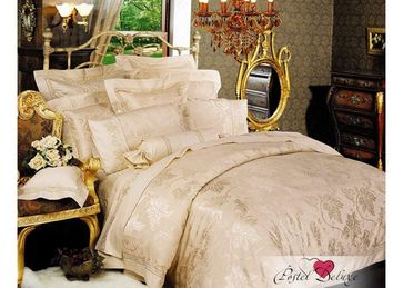 Постельное белье сделано из жаккарда - ткани фактурного плетения, в которой нити очень плотно переплетены и образуют узорчатый релье. При таком плетении достигается очень высокая плотность нитей на единицу площади, поэтому всякий жаккард заведомо долговечнее любого другого материала, полученного одним из простых способов плетения. Народное название жаккарда – искусственный шелк. Петли перекручены, при растяжке не распускаются. Благодаря этому ткань жесткая, прочная, но не тяжелая, менее подвержена истиранию. Жаккард очень практичный материал, неприхотливый в уходе.