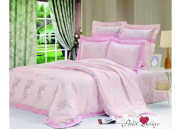 Постельное белье сделано из жаккарда - ткани фактурного плетения, в которой нити очень плотно переплетены и образуют узорчатый релье. При таком плетении достигается очень высокая плотность нитей на единицу площади, поэтому всякий жаккард заведомо долговечнее любого другого материала, полученного одним из простых способов плетения. Народное название жаккарда – искусственный шелк. Петли перекручены, при растяжке не распускаются. Благодаря этому ткань жесткая, прочная, но не тяжелая, менее подвержена истиранию. Жаккард очень практичный материал, неприхотливый в уходе.