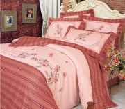 Высококачественное постельное белье производиться исключительно из натурального сырья. По внешней стороне пододеяльника и наволочек размещен оригинальный цветочный рисунок, полученный в результате гобеленового плетения. Внутренняя сторона пододеяльника, наволочек и простыни, это 100% сатин с эксклюзивной вышивкой. Белье упаковано в подарочную коробку. None