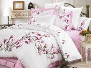 Романтический и ценный подарок для тех, кто любит весеннее время – время обновления, пышного цветения и ярких красок! На белоснежном поле распускаются роскошные цветы магнолии, знаменитые опьяняющим ароматом и тонкой, величественной красотой. Утонченная многоцветная вышивка-сеточка делает цветы объёмными, а нежно-розовые декоративные ушки у наволочек дополняют романтический образ комплекта. None
