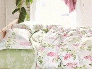 Цветочный рисунок на нежно-розовом фоне в сочетании с фисташковой простынёй подарит Вам весеннее настроение.