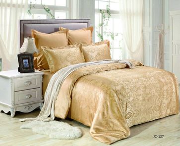 Комплект белья в золотистой расцветке удовлетворит многих почитателей роскоши. Отлично впишется в светлую комнату, и будет гармонировать с ней. Четыре наволочки которые идут в комплекте, так же будут хорошим дополнением. Оплата: наличные, бн расчет, карты Страна производства: Китай