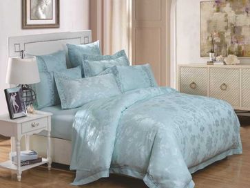Чистый, небесно-бирюзовый цвет очаровывает с первого взгляда! Нежный, ласковый, цвет прозрачной морской волны. Легкий, ненавязчивый цветочный узор только подчеркивает свежесть и воздушность комплекта. Комплект украшен вышивкой по канту ушек пододеяльника и наволочек.