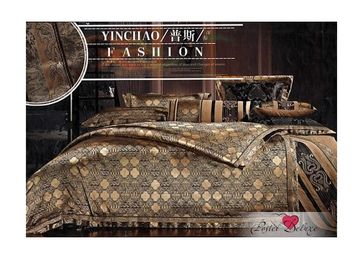 Постельное белье сделано из жаккарда - ткани фактурного плетения, в которой нити очень плотно переплетены и образуют узорчатый релье. При таком плетении достигается очень высокая плотность нитей на единицу площади, поэтому всякий жаккард заведомо долговечнее любого другого материала, полученного одним из простых способов плетения. Петли перекручены, при растяжке не распускаются. Благодаря этому ткань жесткая, прочная, но не тяжелая, менее подвержена истиранию. Жаккард очень практичный материал, неприхотливый в уходе.