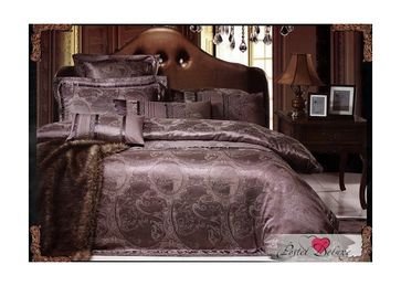 Постельное белье сделано из жаккарда - ткани фактурного плетения, в которой нити очень плотно переплетены и образуют узорчатый релье. При таком плетении достигается очень высокая плотность нитей на единицу площади, поэтому всякий жаккард заведомо долговечнее любого другого материала, полученного одним из простых способов плетения. Петли перекручены, при растяжке не распускаются. Благодаря этому ткань жесткая, прочная, но не тяжелая, менее подвержена истиранию. Жаккард очень практичный материал, неприхотливый в уходе.