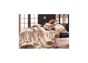 Постельное белье сделано из жаккарда - ткани фактурного плетения, в которой нити очень плотно переплетены и образуют узорчатый релье. При таком плетении достигается очень высокая плотность нитей на единицу площади, поэтому всякий жаккард заведомо долговечнее любого другого материала, полученного одним из простых способов плетения. Петли перекручены, при растяжке не распускаются. Благодаря этому ткань жесткая, прочная, но не тяжелая, менее подвержена истиранию. Жаккард очень практичный материал, неприхотливый в уходе.
