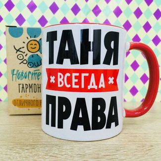 - Именная кружка Таня всегда права, в коробке по выгодной цене 450 р. руб.;