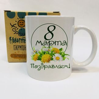 - Кружка 8 марта поздравляем, в коробке по выгодной цене 395 р. руб.;