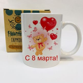 - Кружка С 8 марта, мишка с шариками, в коробке по выгодной цене 395 р. руб.;