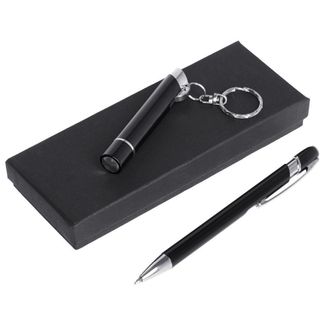 <p>Набор состоит из алюминиевой шариковой ручки с черными чернилами и брелка-фонарика.</p> <p>Батарейки в комплекте.</p> <ul class="itm-opts"> <li> <div class="itm-opts-label">Размеры: коробка:16,8х6,7х2,4 см; фонарик: длина 8,7 см, диаметр 1,4 см; ручка: 14х1 см</div> </li> <li> <div class="itm-opts-label">Материал: переплетный картон; металл; пластик; алюминий</div> </li> <li> <div class="itm-opts-label">Вес (1 шт.): 91,67 г</div> </li> </ul> Наличные, безнал., карты, эл. деньги, юр. лица Возможен самовывоз. Есть доставка.