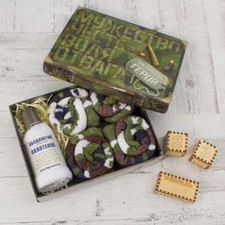 - Набор Мужество, воля, отвага: полотенце 30х30 см и носки 4 пары по выгодной цене 599 р. руб.;
