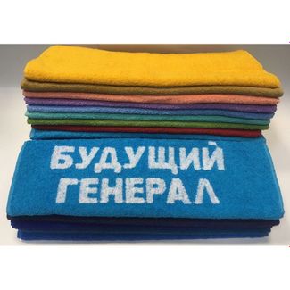 <p>Полотенце с надписью: будущий генерал. Купите в подарок любимому мужчине на 23 февраля!</p> <p>Размер полотенца 100*50см</p> <p><strong>Внимание! Цвета полотенец идут в ассортименте. Выбрать определенный цвет - нельзя.</strong></p> <p>Если Вам Важен цвет полотенца + 200 руб. к стоимости.</p> Наличные, безнал., карты, эл. деньги, юр. лица Возможен самовывоз. Есть доставка.