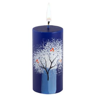 Свеча ручной работы Снегири на ветке, в форме цилиндра