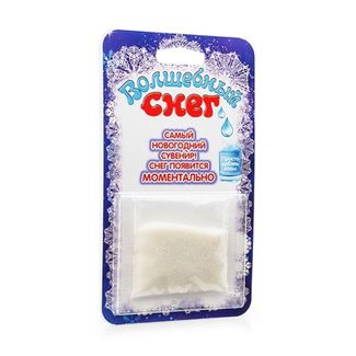 <p>Волшебный снег - это удивительная вещь.</p> <p>Это необычный эксперимент, который интересно проводить и детям, и взрослым: добавьте воды, и вы увидите, как снег увеличится в объеме в 10 раз буквально за секунды!</p> <p>У вас получится искусственный снег, он очень похож на настоящий - такой же прохладный и влажный. Волшебный снег не тает, его можно использовать для декорирования подоконников и новогодних композиций, для создания зимней атмосферы даже в жаркий летний день.</p> <p>Влага постепенно будет испаряться из Волшебного снега, и через несколько дней он начнет уменьшаться в объёме. Сбрызните его водой, и он снова станет пушистым и рассыпчатым. Если вы хотите использовать снег в следующий раз, позвольте ему полностью высохнуть, соберите в пластиковый пакет. В следующий раз можно будет повторить эксперимент - Волшебный снег не теряет своих свойств!</p> <p>Волшебный снег абсолютно безопасен: это искусственный не токсичный полимер, его используют в кино для сьемки зимних сцен внутри помещений, в театральных постановках и игровых сценах.</p> <p>Упаковка: блистер с европодвесом</p> <p>Размер упаковки: 17х10 см</p> <p>Вес сухого порошка: 10г</p> <p>Из 1 пакетика получится 2 стакана Волшебного снега</p> <p>Производство: Россия</p> Наличные, безнал., карты, эл. деньги, юр. лица Возможен самовывоз. Есть доставка.