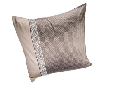 Очаровательный мелкий горох на серо-бежевом фоне очень гармонично сочетается с белоснежным кружевом. Наволочки закрываются на клапан.