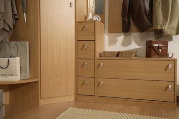 Модульная серия прихожих "Комфорт" легко подстраивается под условия Вашего жилья: выбирайте только те модули, которые Вам нравятся и соответствуют Вашим потребностям. Вешалка 21 проста и удобна в использовании - крючки находятся на разном уровне высоты, что делает ее эксплуатацию легкой для детей. Практичный Шкаф угловой 1 имеет много места для хранения верхней одежды. Тумба 17 высотой в 49 см отлично подходит для прихожей. Обуваться сидя на ней, будет значительно удобнее. А в компактных ящиках Тумбы 19 можно хранить незаменимые мелочи: ключи, ложку для обуви, телефонную книжку.
