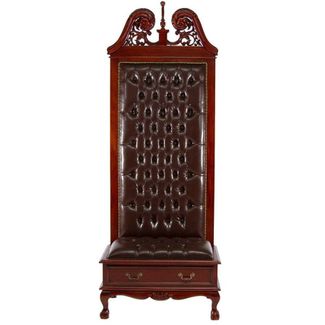 Размер: 800х510х2080 мм Цвет: Вишня Обивка: Коричневая экокожа Материал: Красное дерево Минимальная сумма заказа 1000 рублей. Возможен самовывоз.