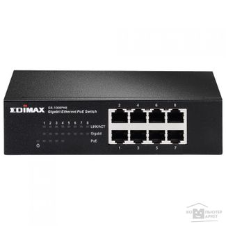 - Edimax GS-1008PHE Неуправляемый коммутатор, 8 портов, GbE PoE+: 4 8p 100 1000, 43W по выгодной цене 5 237 р. руб.;